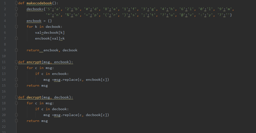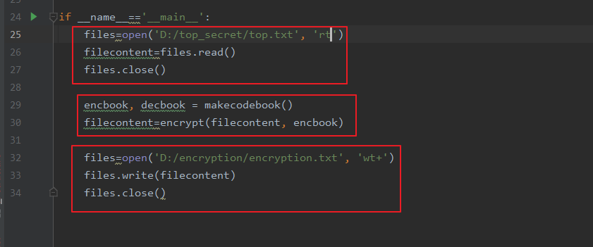 그 결과 평문 내용이 암호화 되어 있는 것을 알 수 있다. 소스코드는 르그랑 코드북과 동일하므로 추가적인 설명은 안함. 다만 차이가 있다면 이번 if __name__ == ' __main__':안에 코드는 생성한 파일을 읽기 위해 구현된거 말곤 동일함.