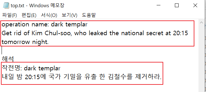 top이라는 txt파일을 생성 후 암호화 시킬 내용을 작성.