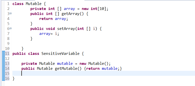 이 예는 Mutable 클래스로 구성되어 있는데 내부 객체의 수정을 허용한다.