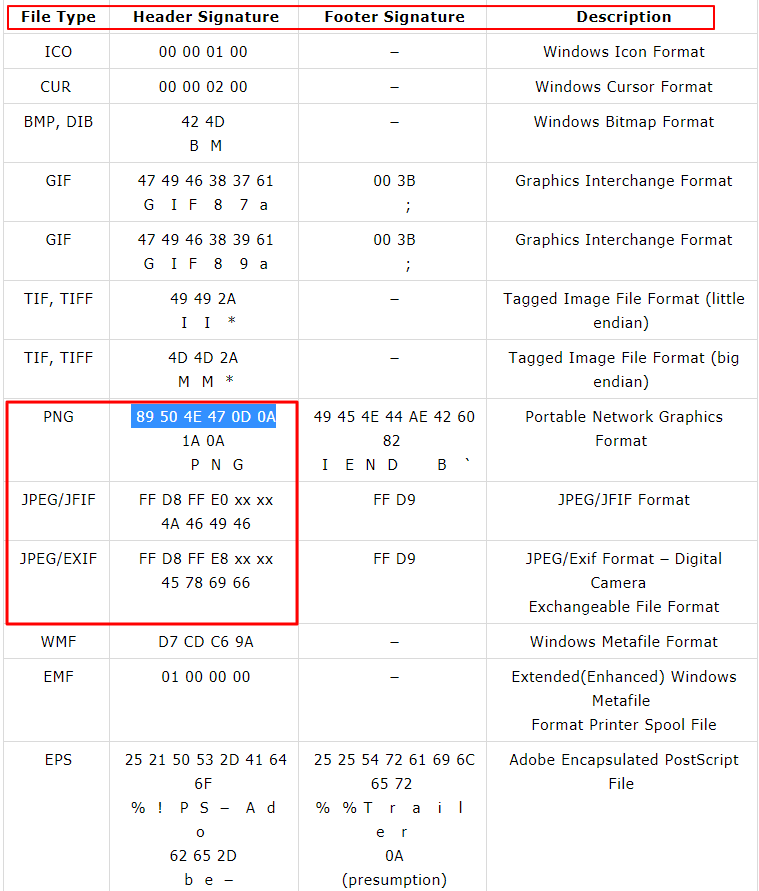파일 시그니처 분석표이다. 해당 PNG Header Signature 코드는 "89 50 4E 47 0D 0A"이다. 주로 PNG,JPEG를 사용하니 숙지해 두자.