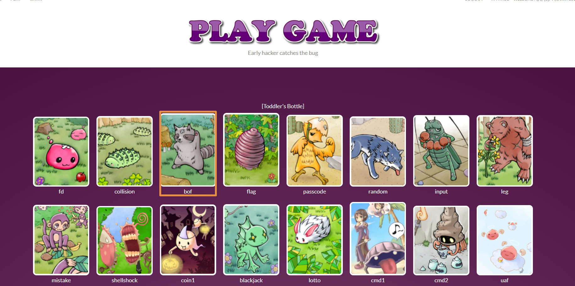 해당 사이트에 접속하여 bof문제에 접속해보자.