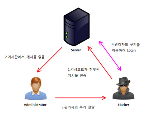 3. 게시물을 읽은 사용자의 권한으로 공격자가 원하는 요청이 발생한다.