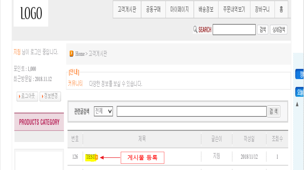 1. 공격자는 CSRF 스크립트가 포함된 게시물을 등록한다.