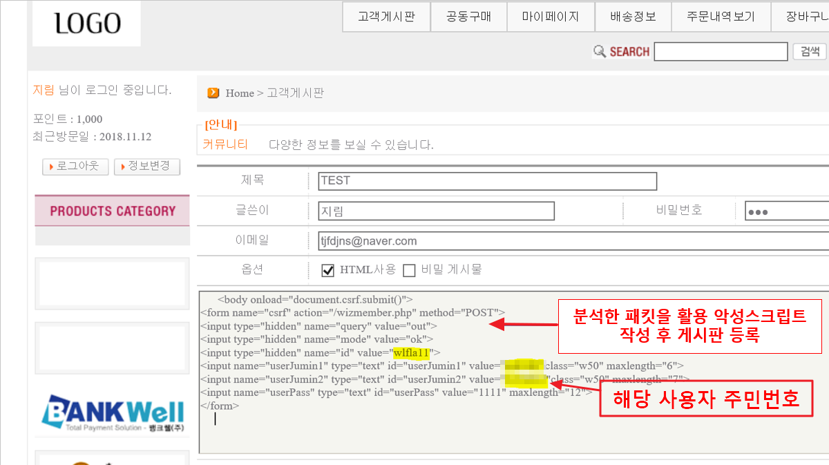 | PART 2: CSRF를 이용한 포인트 변조. 위즈몰(PHP 기반) (0) | 2019.10.02 |