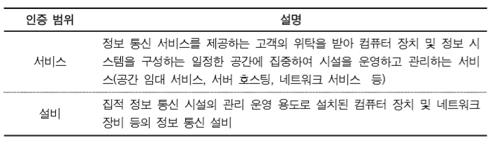 집적 정보 통신 시설의 인증 범위 예시는 다음과 같다.