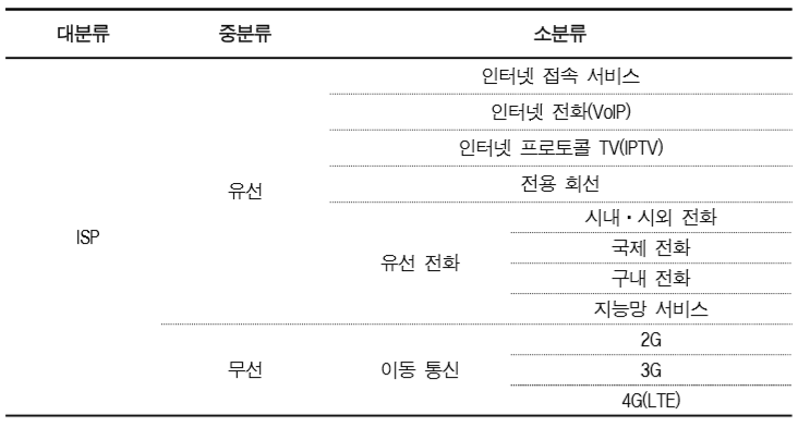 5. 이동 통신 서비스(무선): 모바일(3G, LTE등), Wibro 등을 이용한 음성 통화, 데이터 통신 서비스