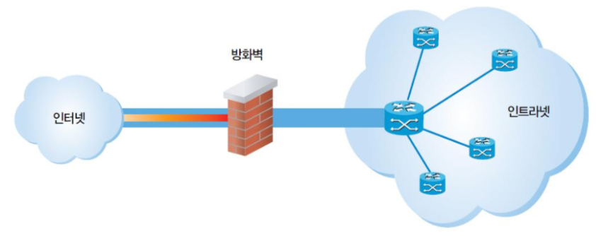 외부에서 내부 네트워크에 접속하는 것을 패킷 필터링 등을 이용하여 통제하는 기능을 가지고 있다.
