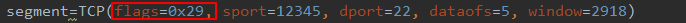 URG= 0x20 + PSH=0x08 + FIN =0x01= 0x29
