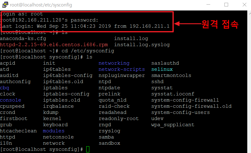 3. PUTTY로 접속하여 CentOS root계정으로 원격접속이 가능하다는 것을 알 수 있었다.