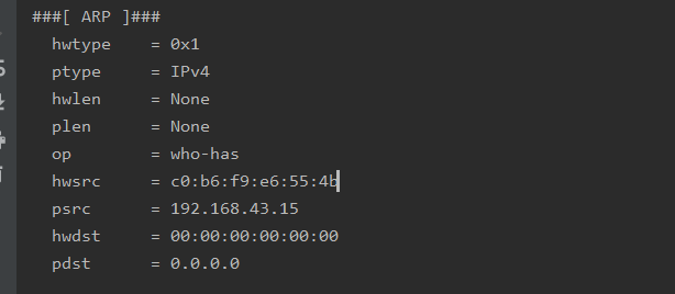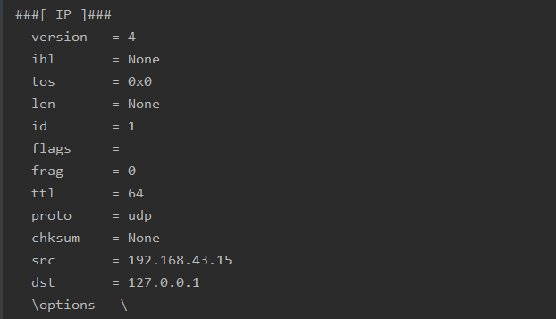 각각 IP()/ICMP(), IP()/UDP()를 이용하여 UDP 헤더, TCP 헤더, IP 헤더, ICMP 헤더를 확인했다. 이외에도 ARP 헤더와