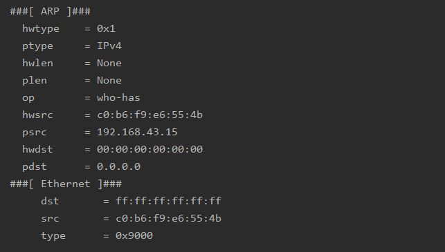 마지막으로 해당 예제는 ARP 브로드캐스트 요청과 ARP 유니캐스트 응답등에서 볼 수 있는 구조이다.