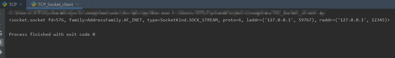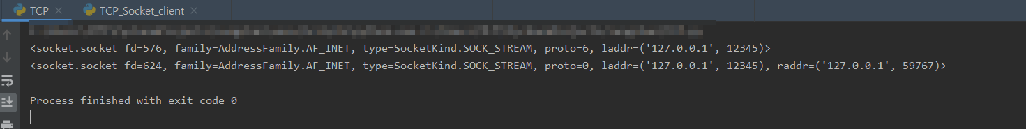 실행 순서는 TCP 서버 코드를 먼저 실행 후 클라이언트 코드를 실행하면 다음과 같은 결과가 나온다.
