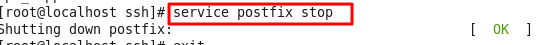 4. service postfix stop명령어로 서비스를 종료하였다.