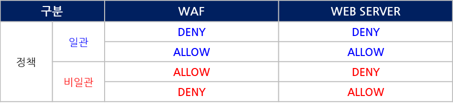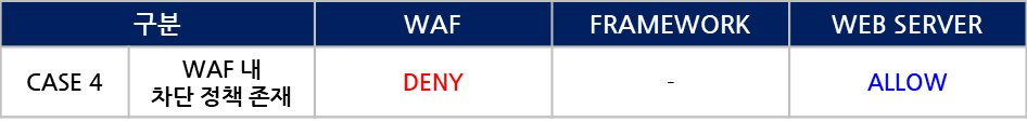 CASE 4의 WAF 정책 내용은 [그림 12] 와 같으며, 웹 서버 설정파일 내용은 [그림 6]의 우측 화면과 같다.