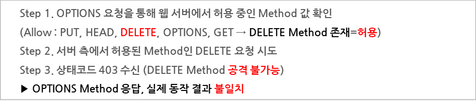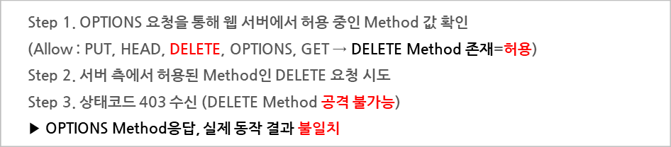 이번 호에서는 [그림 2]의 하위 결과와 같이 OPTIONS Method의 결과와 실제 공격수행 결과가 상이하게 되는 경우의 원인과 결과에 대해서 좀더 자세하게 분석해보고자 한다.