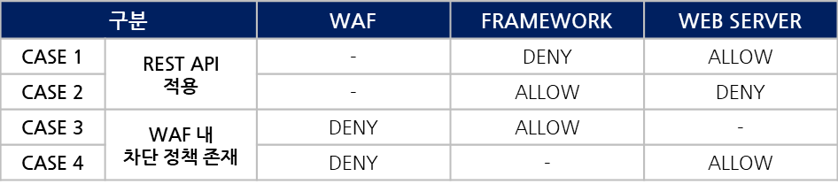 [표 4] 케이스 별 DELETE Method DENY/ALLOW 여부