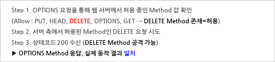 [그림 16] OPTIONS Method 응답과 실제 DELETE Method 동작 결과 간의 상관관계 구성도