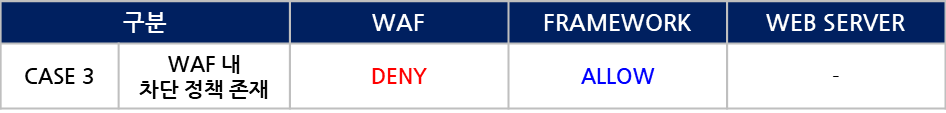 CASE 3의 WAF 정책 내용은 [그림 12]와 같으며, 프레임워크 설정파일 내용은 [그림 9]의 좌측 화면과 같다.