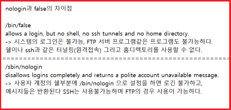 shell 사용이 필요 없는 계정 만들기 -nologin,falee