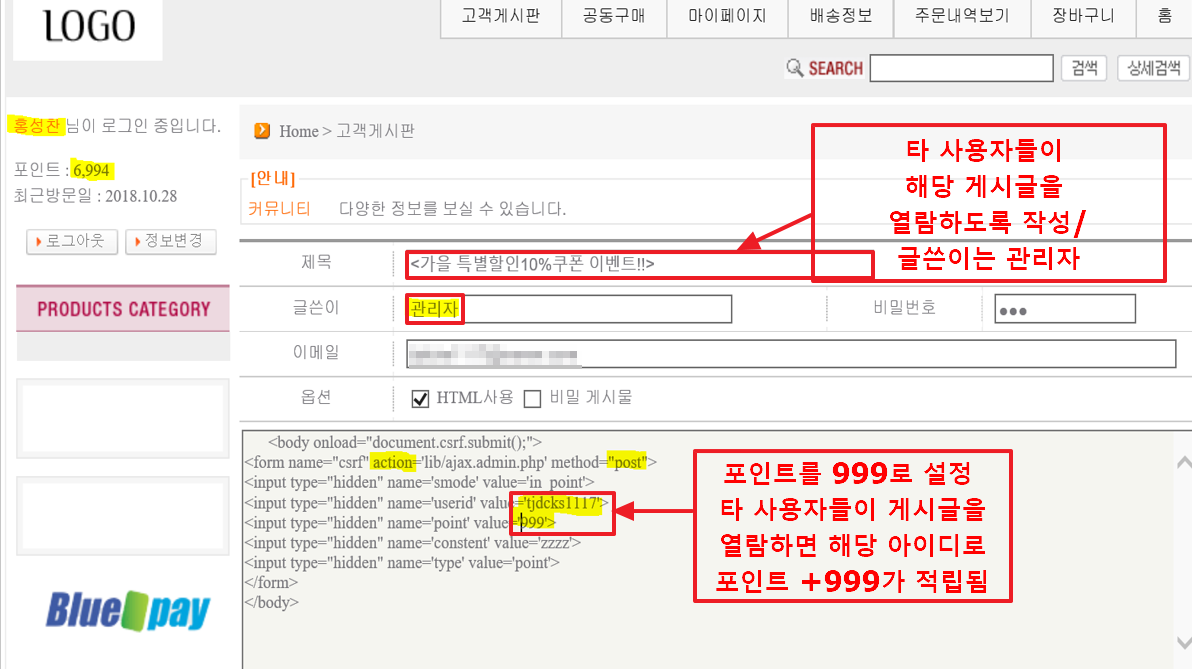 | PART 3: CSRF를 이용한 관리자 PWD변경. 위즈몰(PHP 기반) (0) | 2019.10.02 |