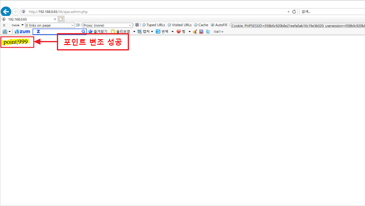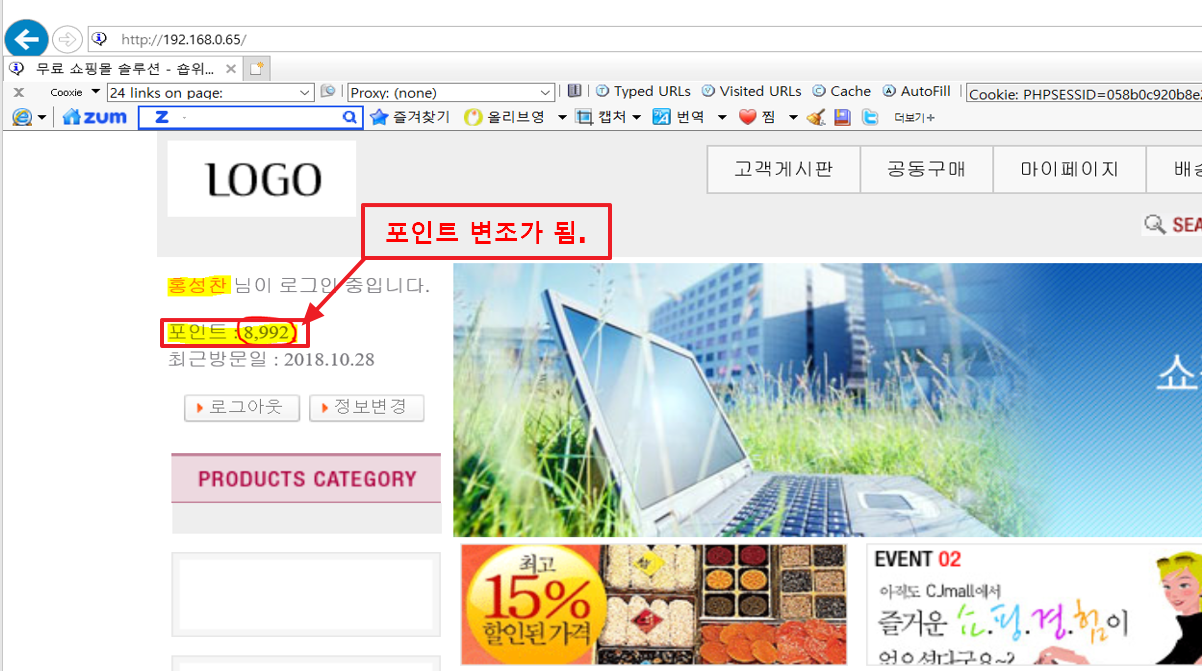 그 결과 타 계정이 게시글을 클릭한 순간 공격자의 포인트가 올라간것을 알 수 있음.