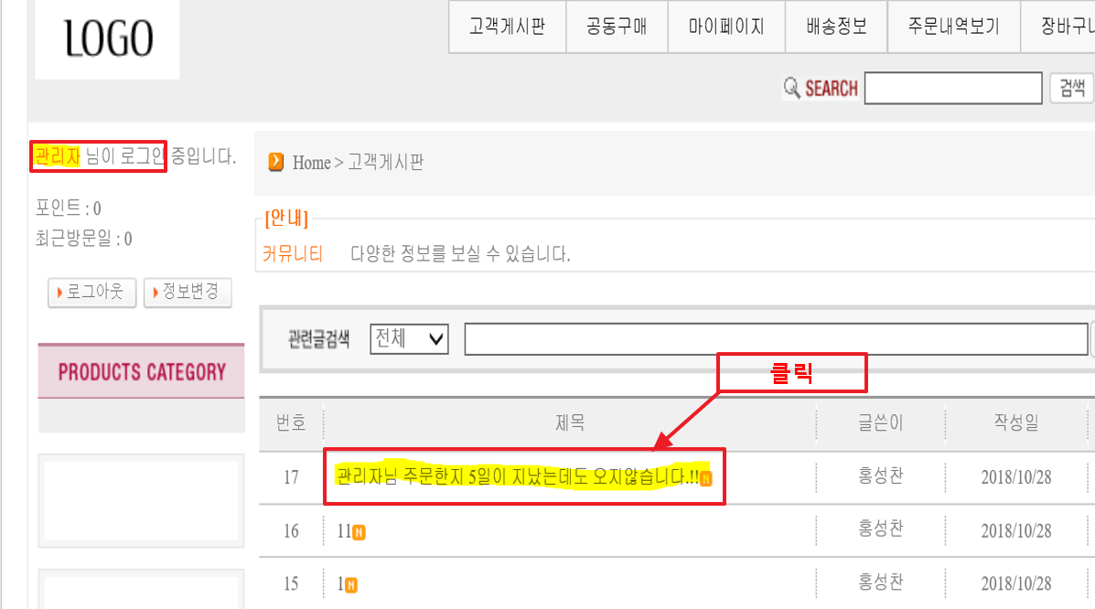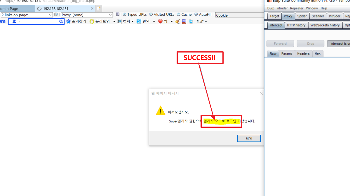 그 결과 관리자로 로그인 된 것을 알 수 있다.