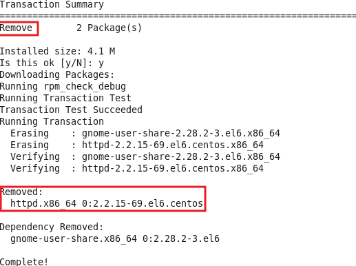 확인 결과 httpd패키지가 성공적으로 삭제가 된것을 알 수 있다.
