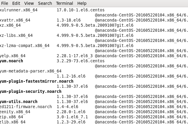 현재 CentOS안에 있는 모든 리스트를 보여준다.