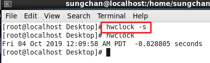 hwclock -s는 반대로 하드웨어의 시간을 따라서 운영체제 시간을 변경하는 명령어이다.