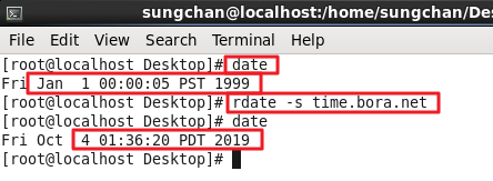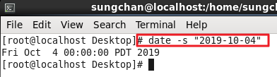 운영체제 시간 변경하기 date -s "2019-10-04 0:0:0"