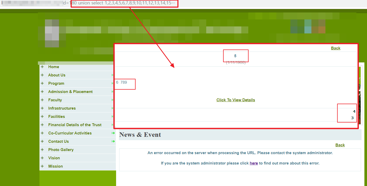 order by로 취약한 컬럼수를 파악하였다 이젠 union select로 이용해서 취약한 컬럼수를 노출시키겠다. URL창에 union select 1,2,3,4,5,6~~,15--를 넣은 결과 해당 창에 숫자들이 뜨는것을