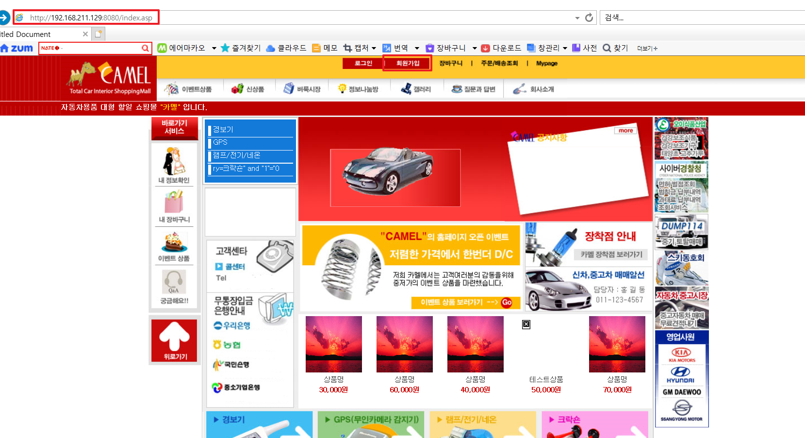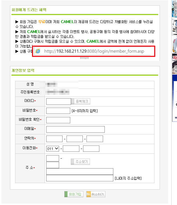 4.메인 페이지로 돌아가 URL주소 창에 회원가입 URL주소를 입력후 URL점팡을 사킨다.