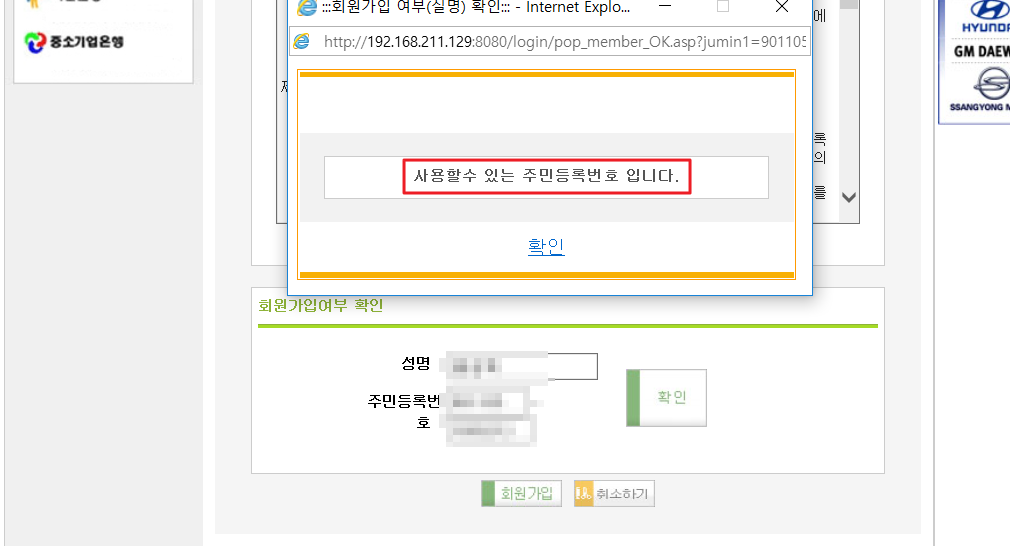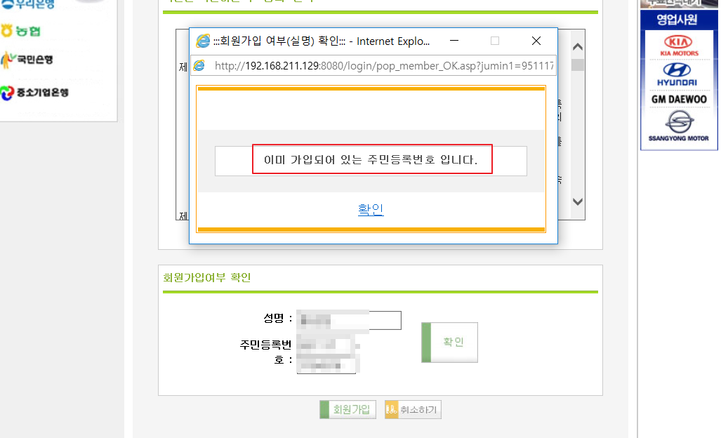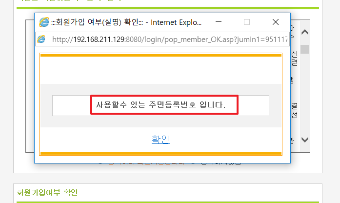 4.그 결과 이미 가입된 주민번호로 회원가입이 가능했다.