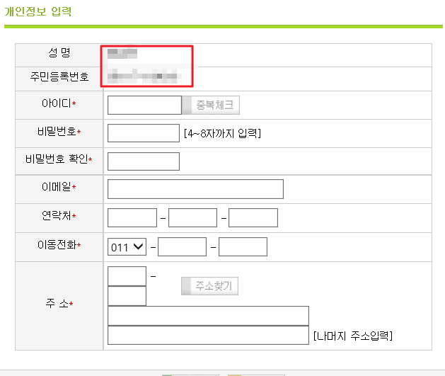 5. 그 결과 성명/주민번호를 인증하지 않고 회원가입에 성공하였다.