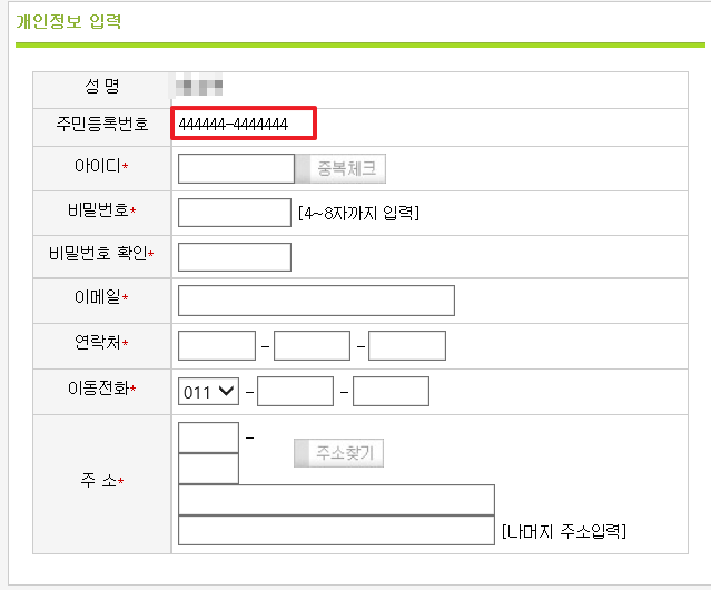 3.해당 주민번호를 아무 번호나 입력해준다.