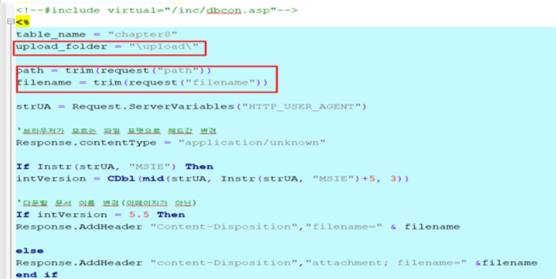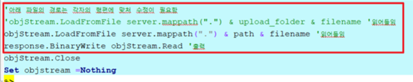 objStream.LoadFromFile server.mappath(".") & path & filename으로 읽어드리게 되고 해당 파일을 출력한다.