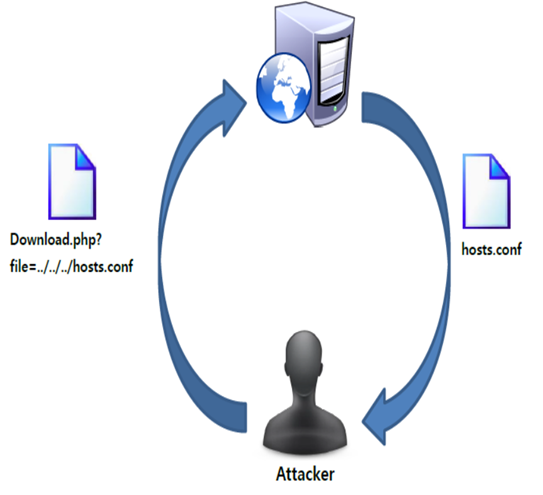파일 다운로드 기능이 존재하는 웹에서 파일 다운로드 시 파일의 경로 및 파일명을 파라미터로 받아 처리하는 경우 이를 적절히 필터링 하지 않으면 공격자가 이를 조작하여 허용되지 않은 파일을 다운 받을 수 있고 임의의 위치에 있는 파일을 열람하거나 다운받는 것을 가능케 하는 취약점.