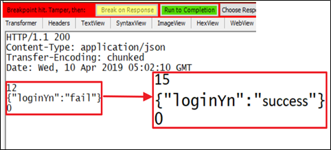 프록시에서 응답값을 fail -> success로 변경을 시도해보자.