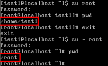 차이점을 보았는가? su root를 이용한 경우 자신의 디렉토리를 su명령어를 실행한 일반 유저의 디렉토리로 있는것을 볼수 있다. 하지만 su - root를 이용한 경우 root의 디렉토리로 나와 있는 것을 알 수 있다.
