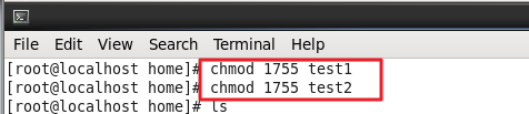 chmod 1755로 sticky bit를 설정한다. 앞에 1은 sticky bit의 특수권한을 의미하고 절대모드로는 1000을 쓴다.