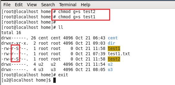test1, test2 파일 권한을 확인해본 결과 -rw-r--r--이라는 것을 알 수 있다. 이제 여기에 setgid설정을 해보자.