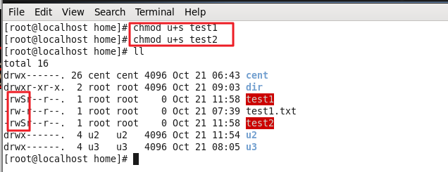 설정 결과 소유자 권한에 s가 생긴 것을 알 수 있다.