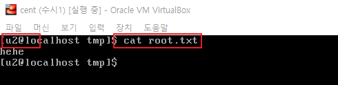 권한 설정 후 다시 u2 계정으로 접속하여 root.txt파일에 접근한 결과 root.txt파일을 읽을 수 있게 된다.