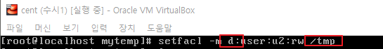 setfacl -m d:user:u2:rw /tmp로 설정을 하면 특정 사용자(u2)는 따로 권한 설정없이 모든 파일에 접근이 가능하다.