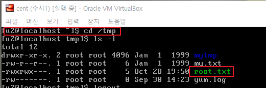 확인 결과 u2계정에 접속하여 mytemp안에 있는 아무 파일에 접근이 가능한 것을 알 수 있다.