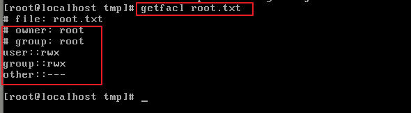 getfacl root.txt로 해당 파일의 정보(접근권한 정보등)를 확인해본다. 퍼미션이 770으로 설정된 상태라는 것을 알 수 있다.