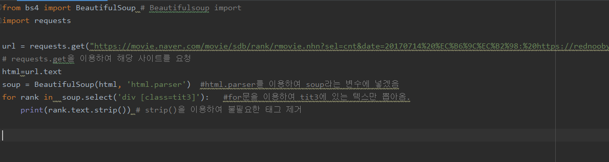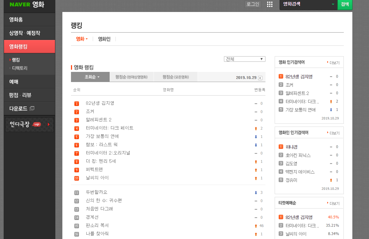 BeautifulSoup를 이용하여 최신영화랭킹 목록을 크롤링 해보자.