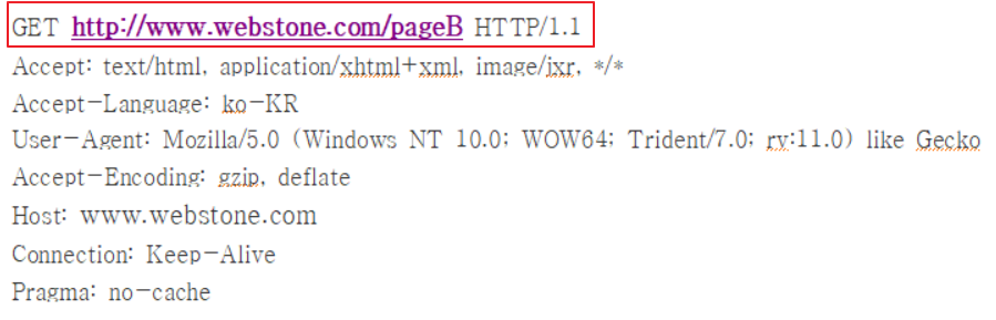 (1)www.webstone.com/pageB로 요청을 보냄